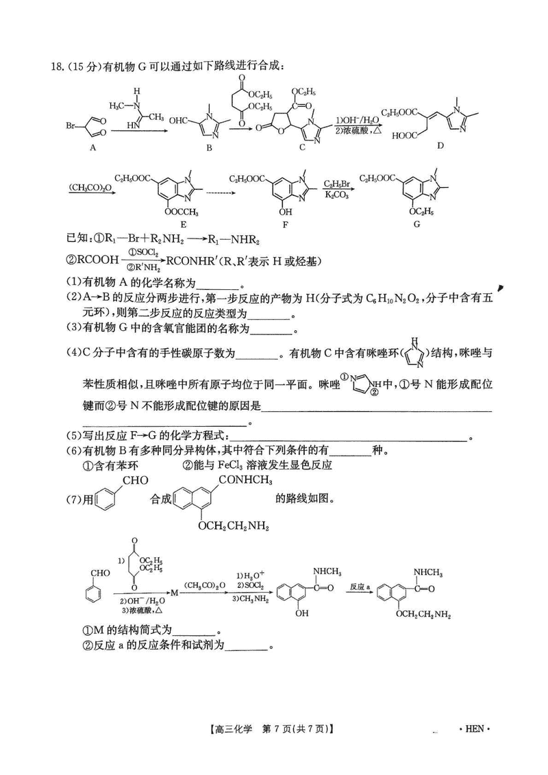 河南创新发展联盟三模2025届高考适应性化学试题及答案