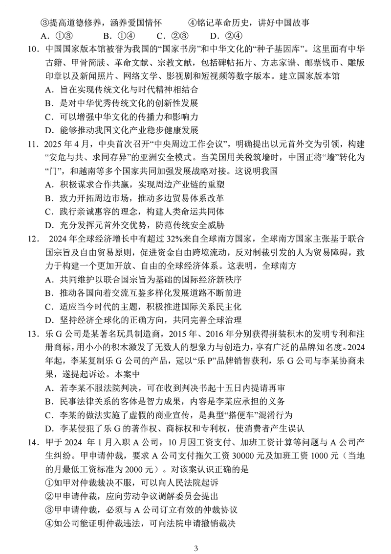 2025届江苏盐城高三下学期考前指导卷政治试题及答案