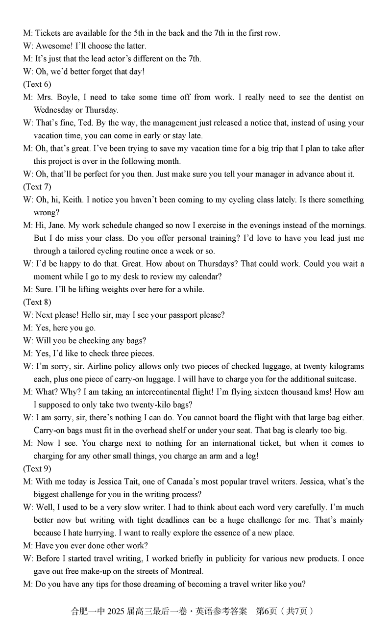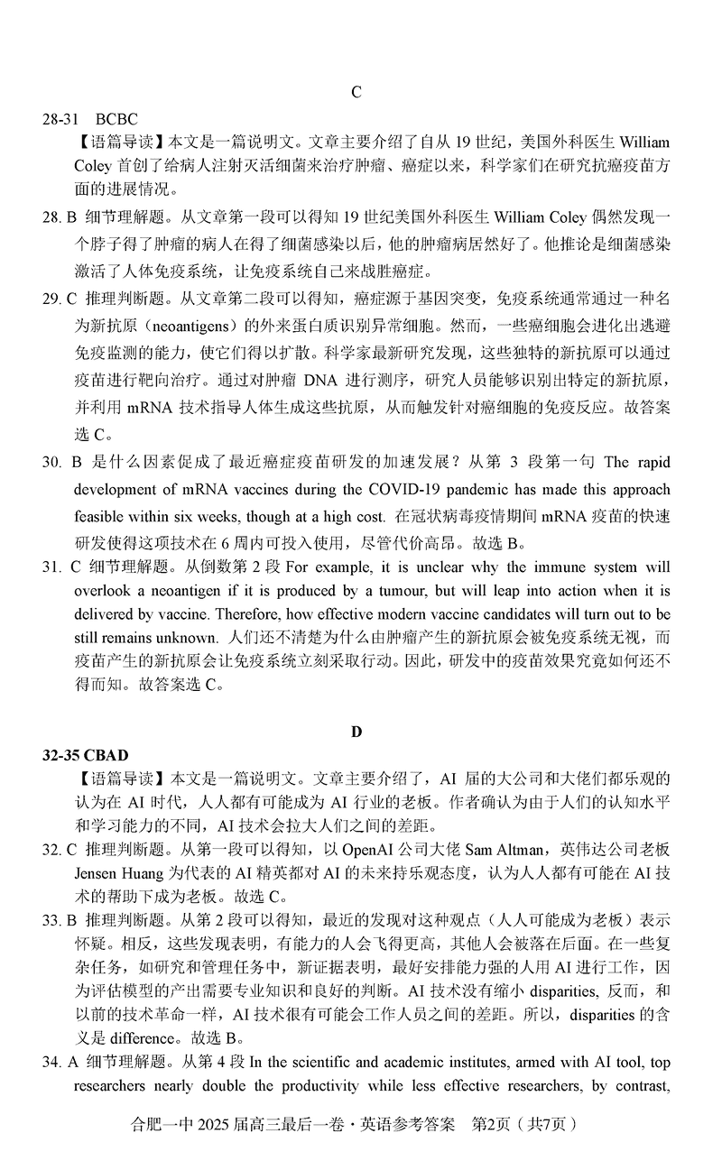 2025年合肥一中最后一卷英语试题及答案 时间:2025-05-26 安徽 英语试题 2025年合肥一中最后一卷英语考试已于近日开考,为方便考生考后及时查看考试情况,查漏补缺、弥补不足,本文整理了试题答案解析相关信息! 汇总:安徽省合肥一中2025届高三最后一卷试题及答案汇总 英语试题及答案解析