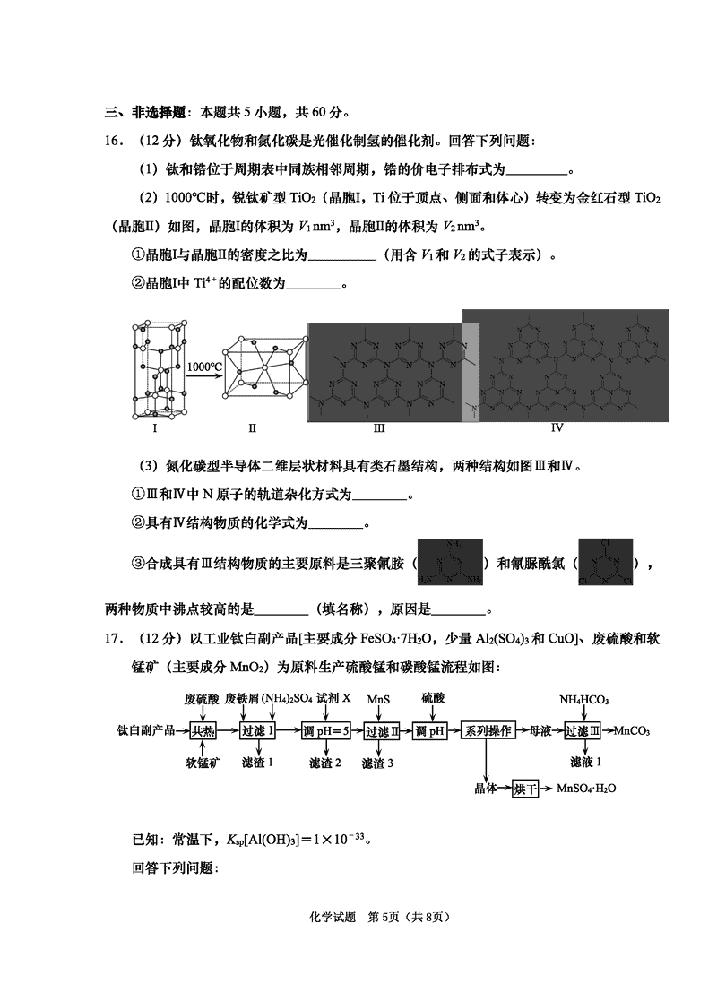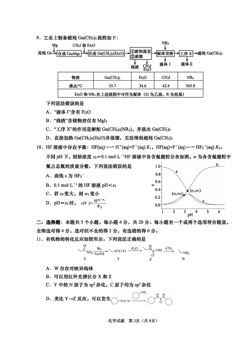 青岛三模2025年高三第三次适应性检测化学试题及答案