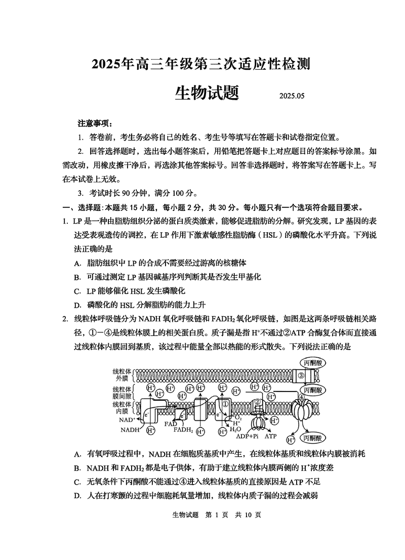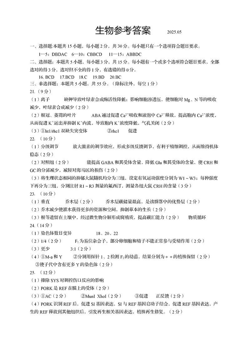 青岛三模2025年高三第三次适应性检测生物考试已于近日开考,为方便考生考后及时查看考试情况,查漏补缺、弥补不足,本文整理了试题答案解析相关信息!