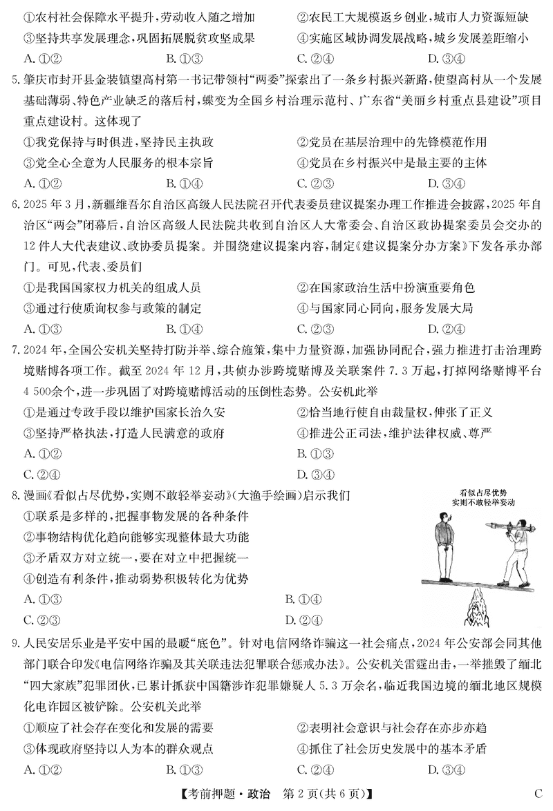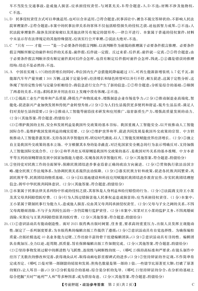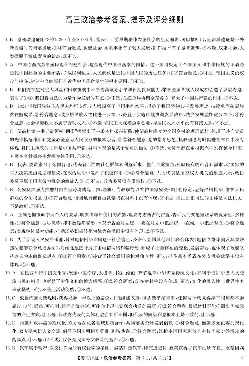 安徽九师联盟2025届高三5月考前押题政治试题及答案
