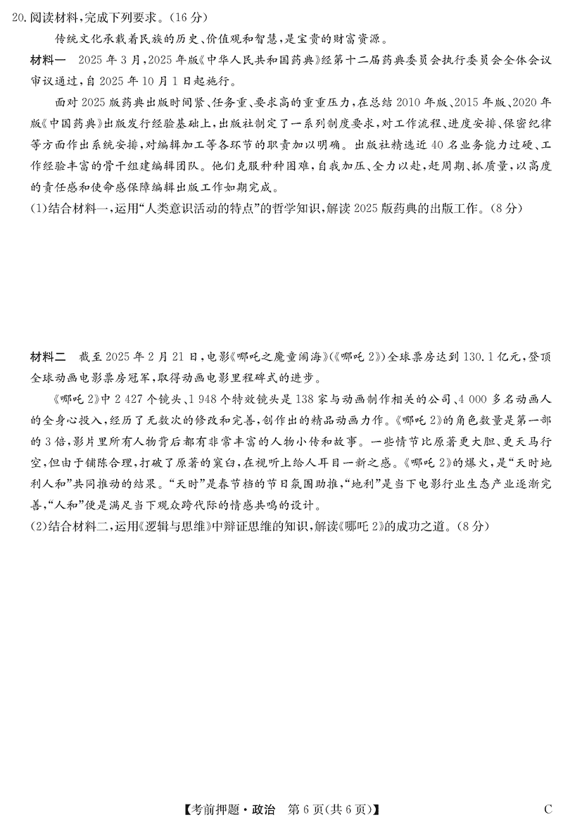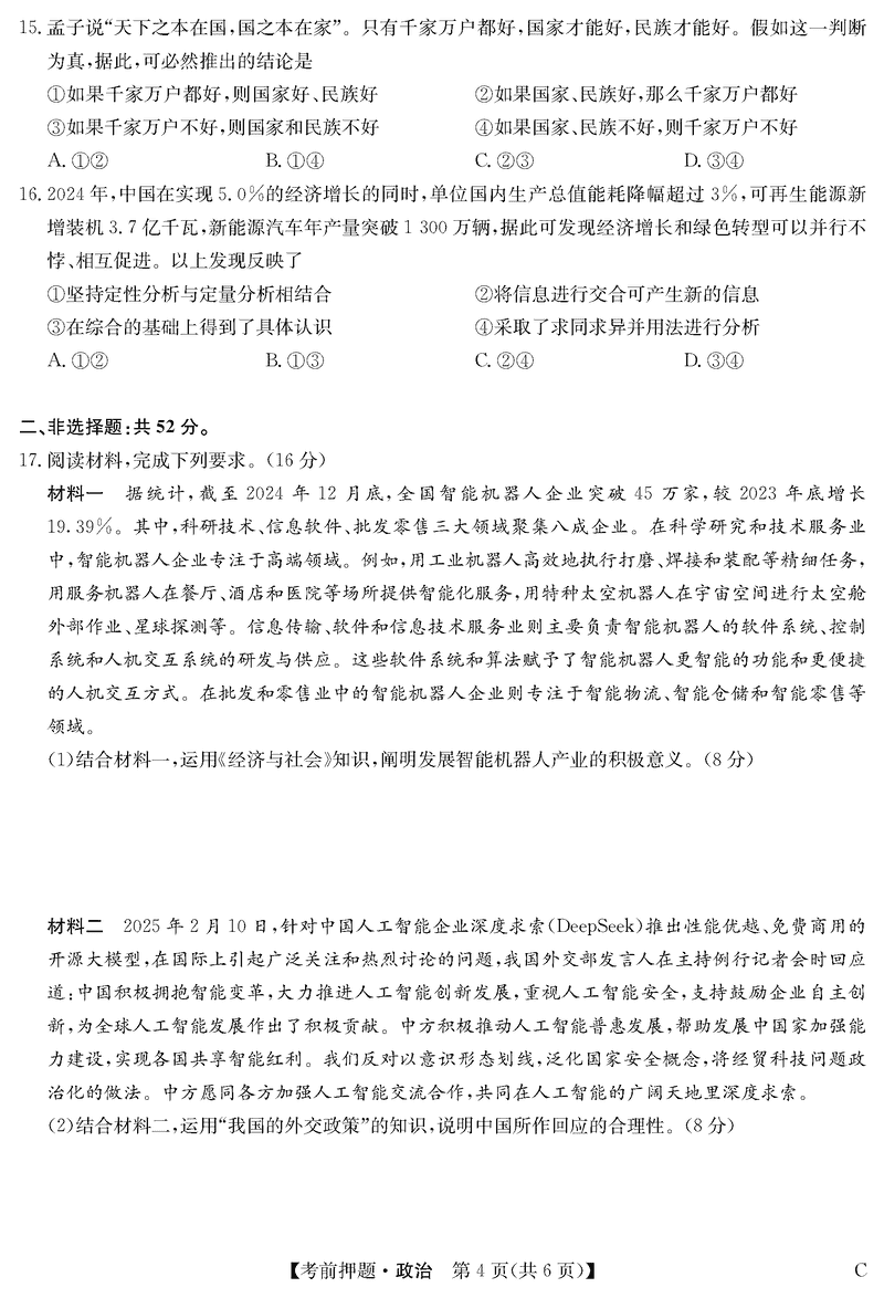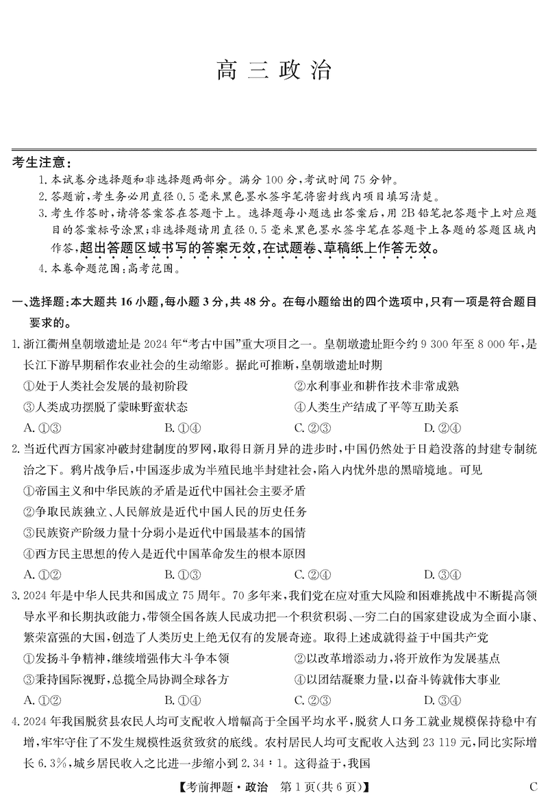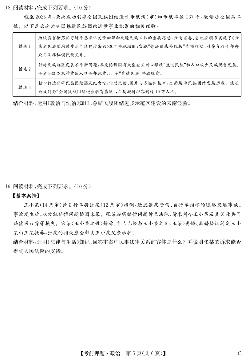安徽九师联盟2025届高三5月考前押题政治试题及答案
