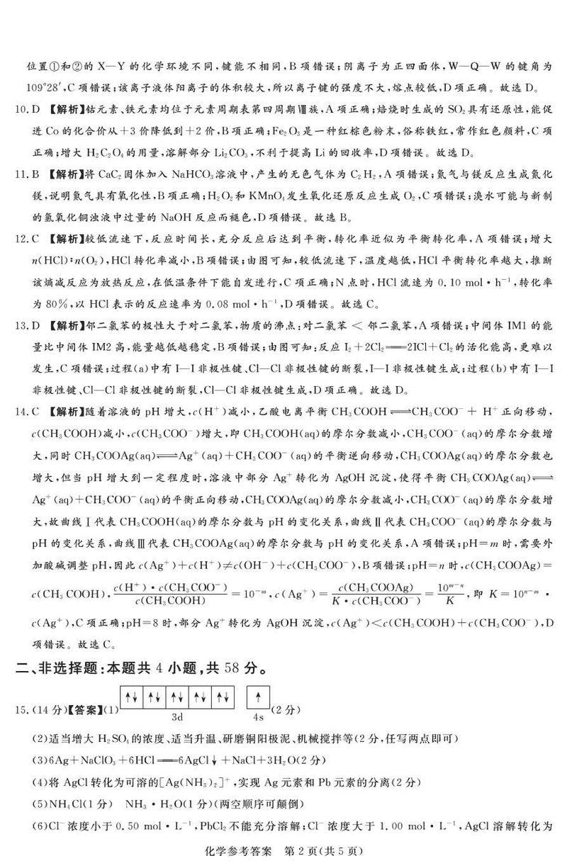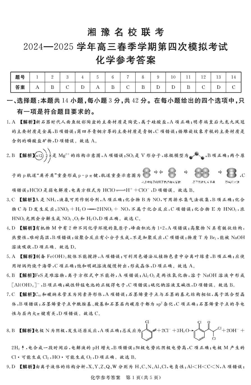 湘豫名校联考2024-2025学年高三第四次模拟化学试题及答案