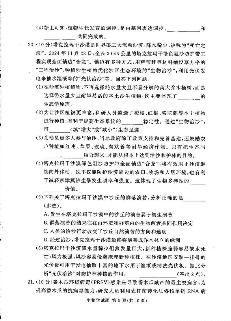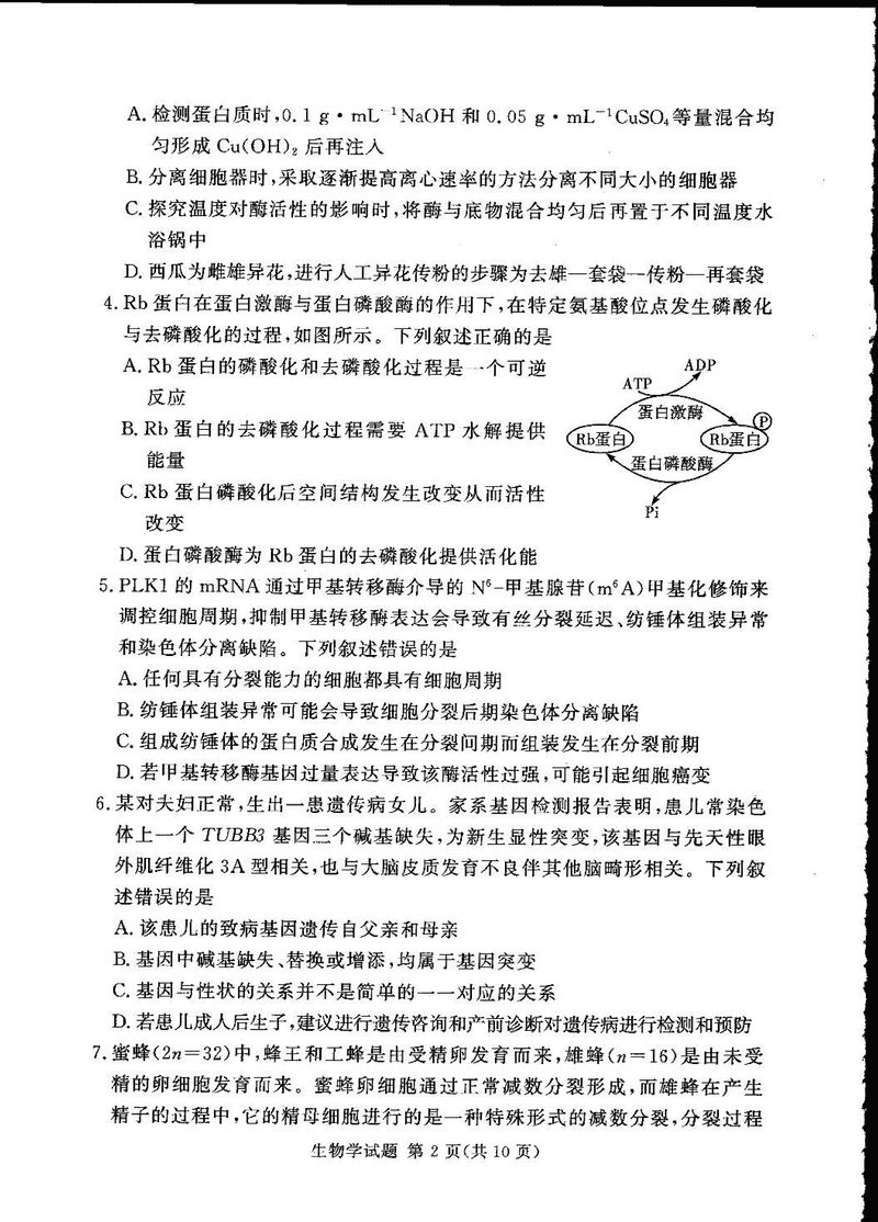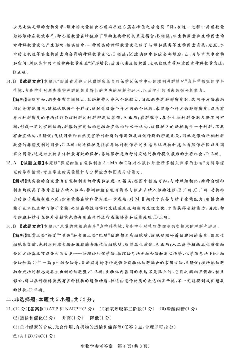 湘豫名校联考2024-2025学年高三第四次模拟生物试题及答案
