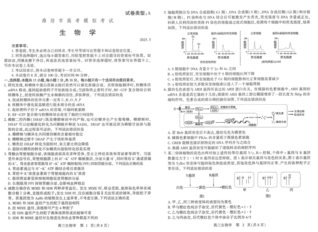 山东省潍坊三模2025届高考模拟生物考试已于近日开考,为方便考生考后及时查看考试情况,查漏补缺、弥补不足,本文整理了试题答案解析相关信息!