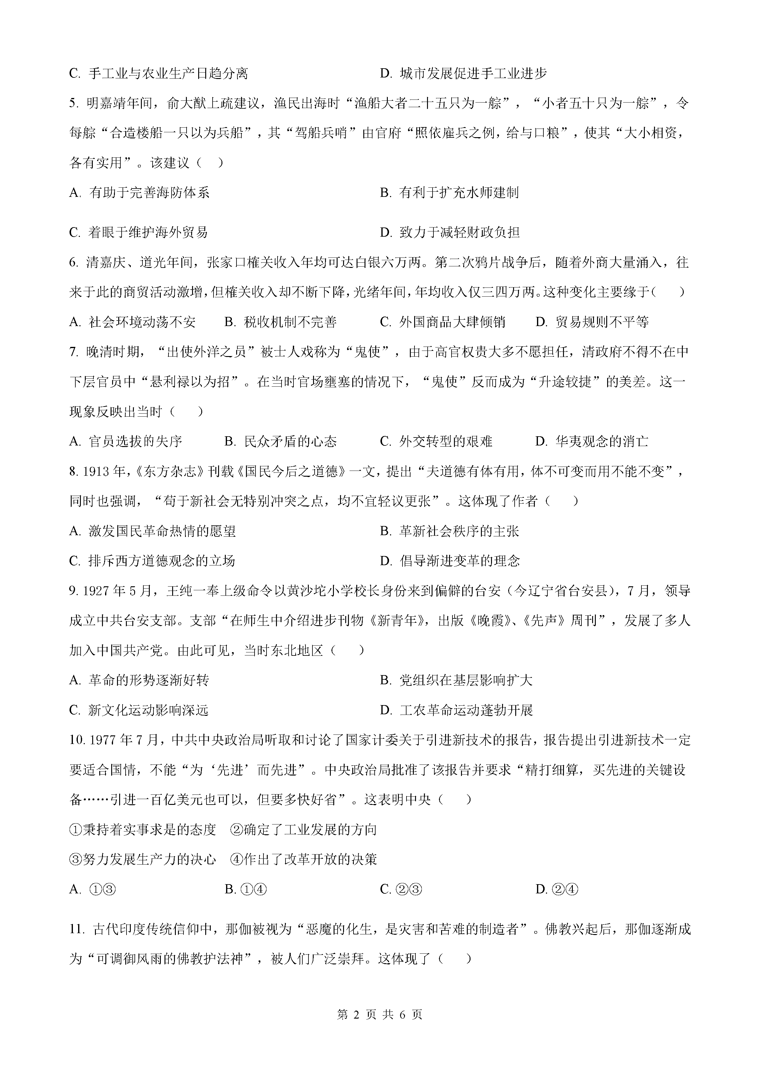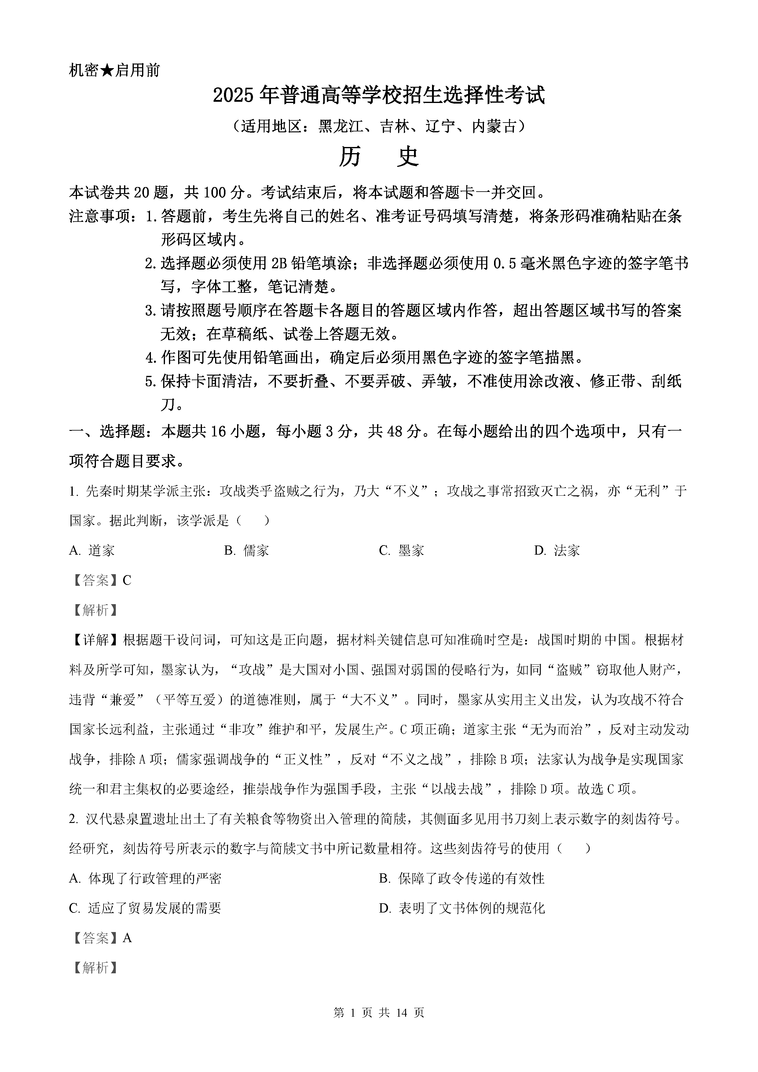 2025年黑龙江吉林辽宁内蒙高考历史试题及答案解析