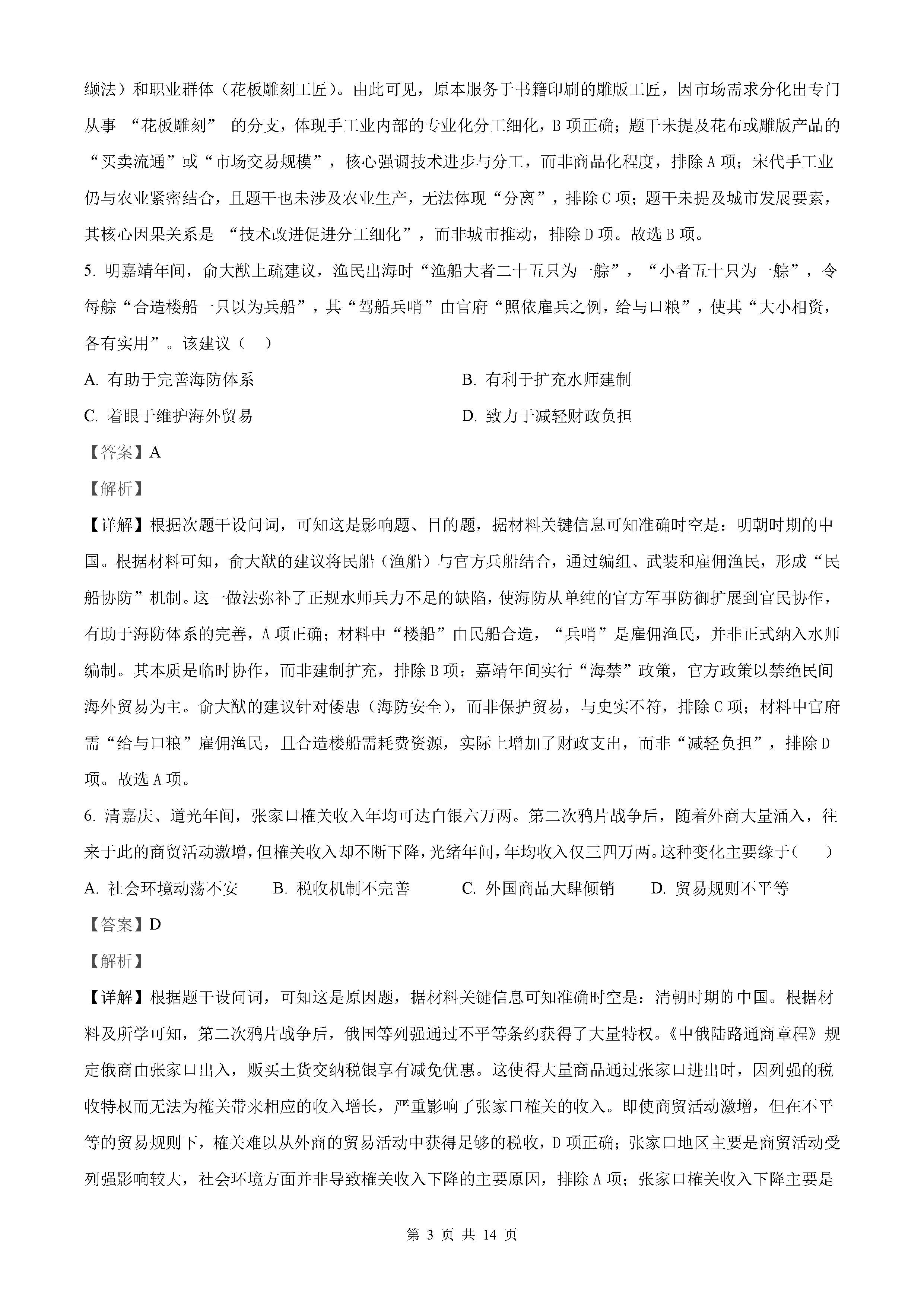 黑龙江大庆2025届高三下学期第三次模考历史试题及答案