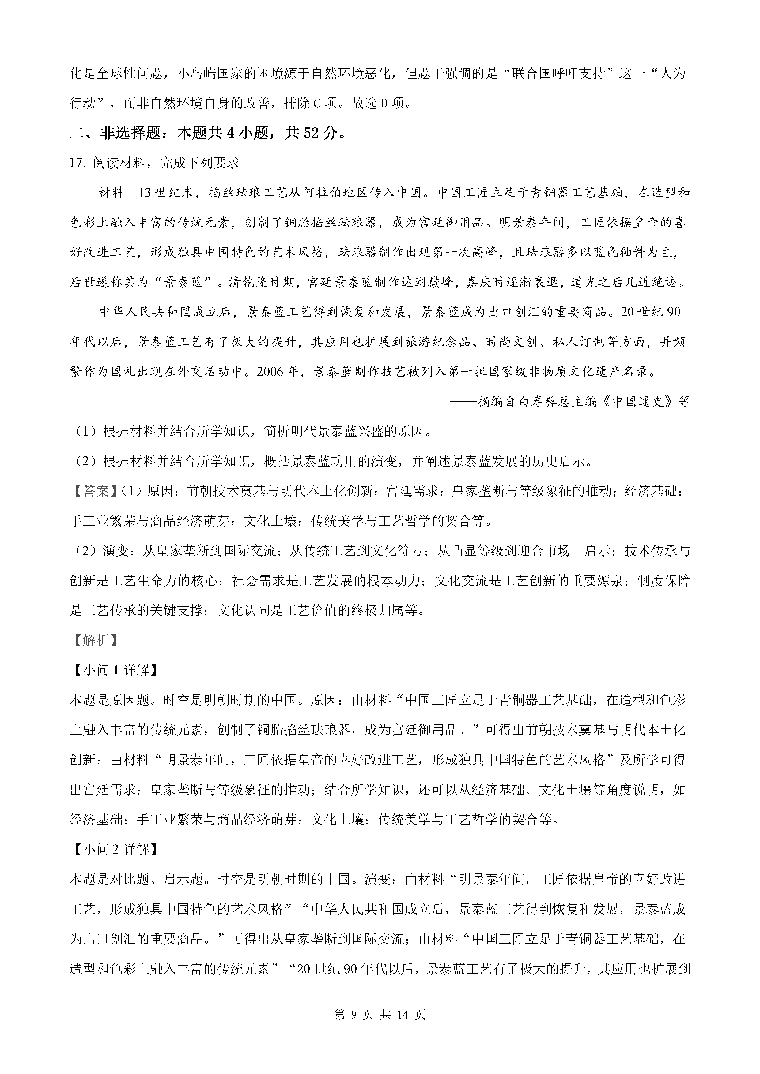 2022年高考全国甲卷文综试卷真题与答案解析