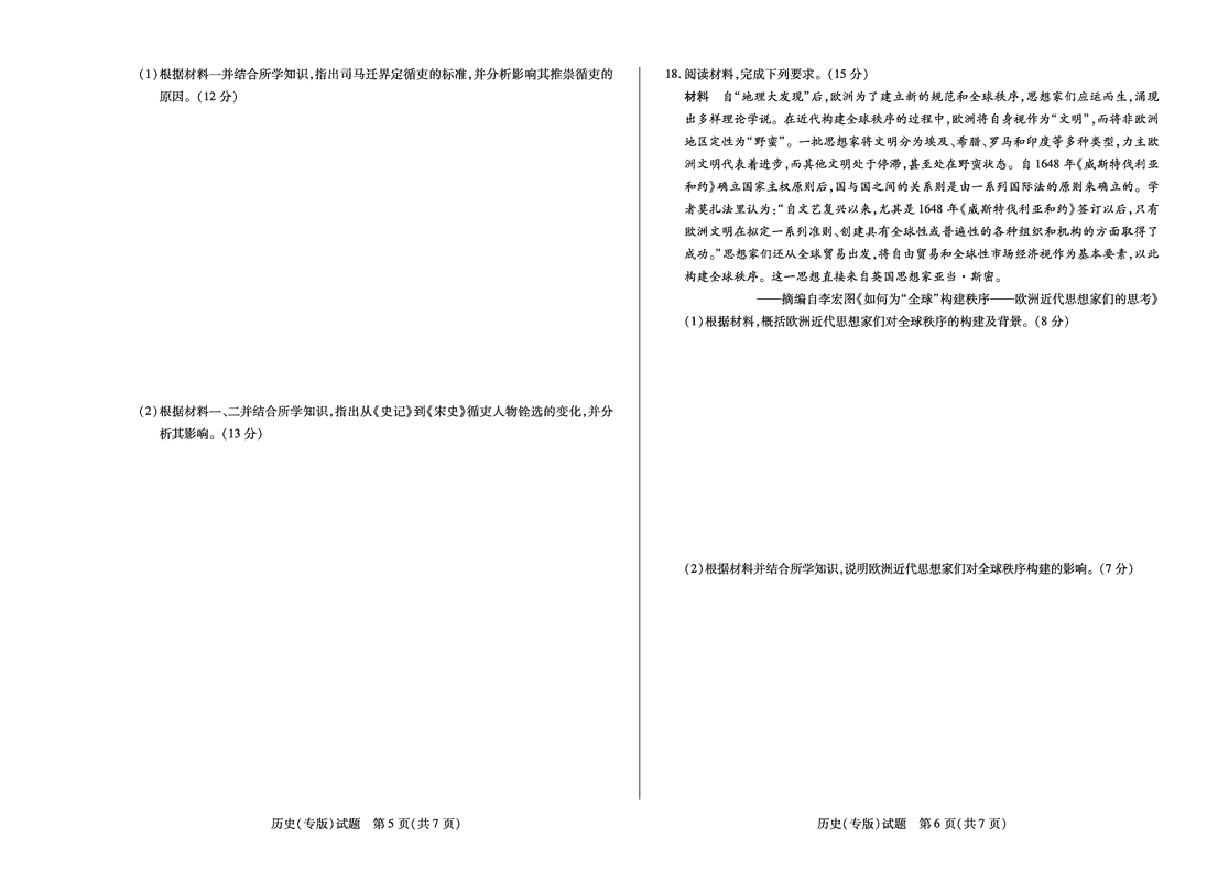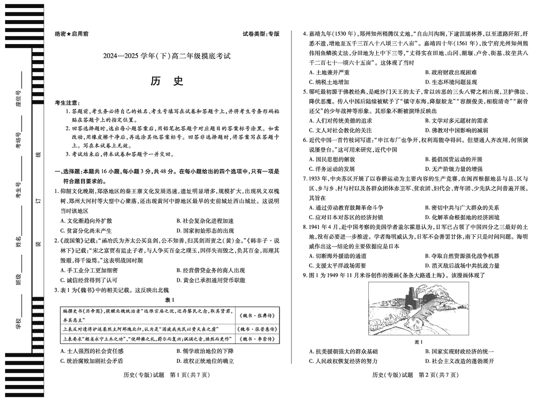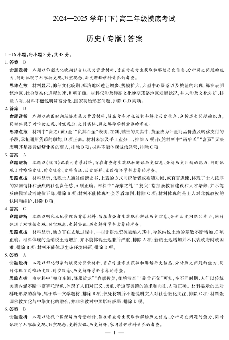 安徽天一大联考2024-2025学年高二下学期6月摸底历史试题及答案 时间:2025-06-22 安徽 高中历史 安徽省天一大联考2024-2025学年高二下学期6月摸底历史考试已于近日开考,为方便考生考后及时查看考试情况,查漏补缺、弥补不足,本文整理了试题答案解析相关信息! 历史试题及答案解析