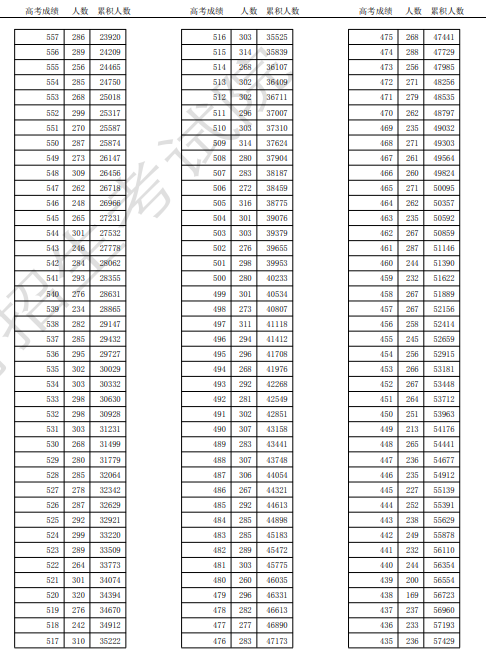 2025天津高考成绩一分一段表最新公布