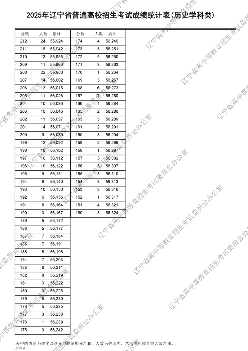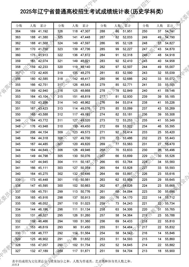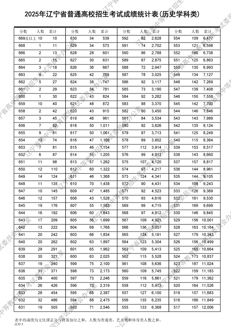 2025年辽宁高考成绩一分一段表及位次排名(历史学科类)