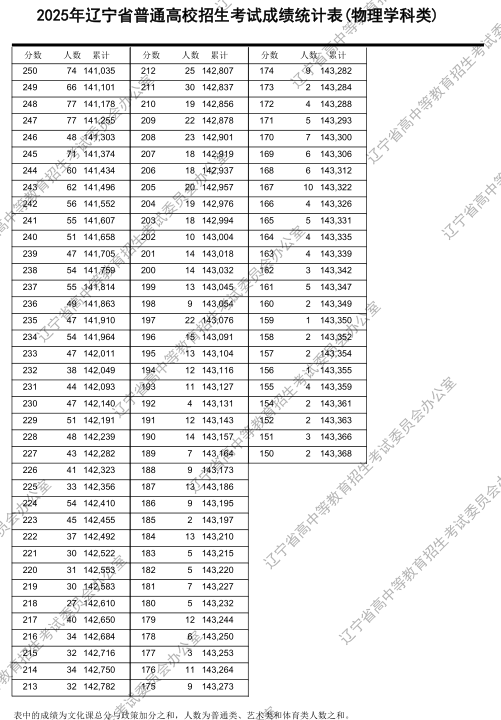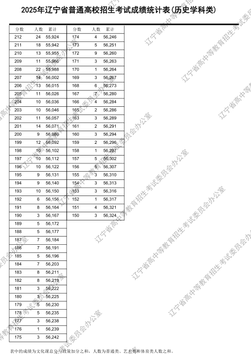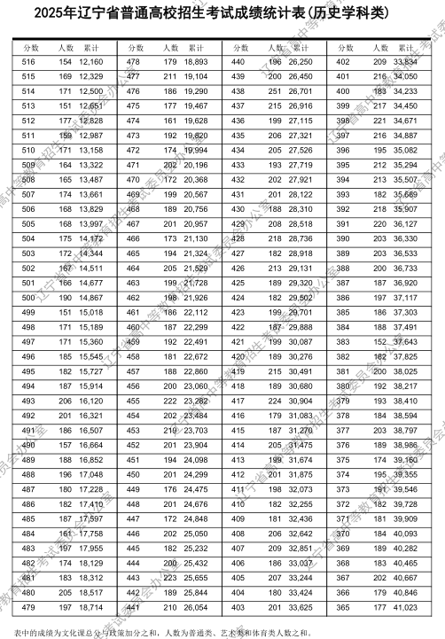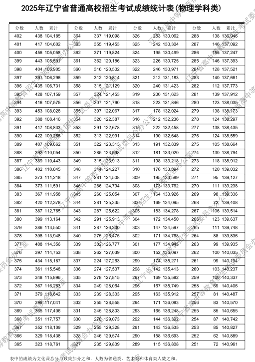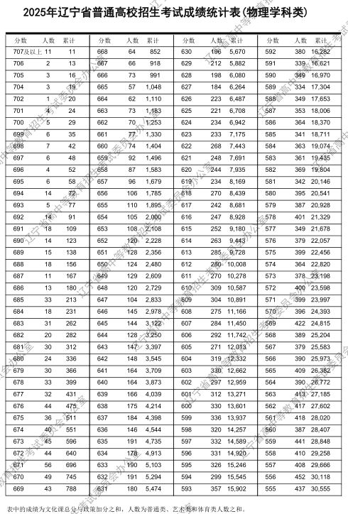 2025辽宁一分一段表最新出炉 高考成绩分布表【物理+历史】