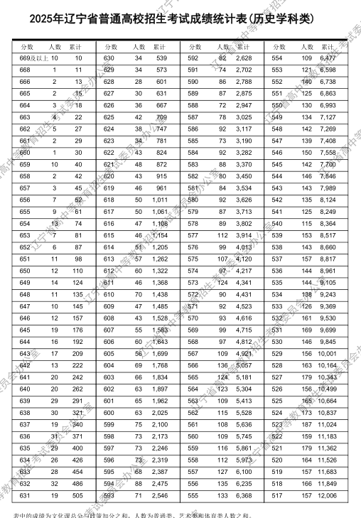 2025辽宁高考历史类一分一段表出炉 最新位次排名