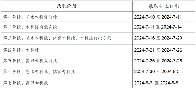 2025重庆高考提前批录取时间暂未公布,可参考2024年各批次录取主要日程安排如下: