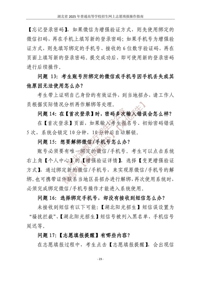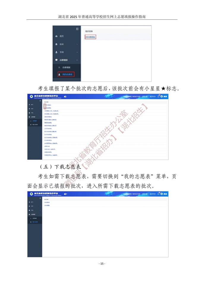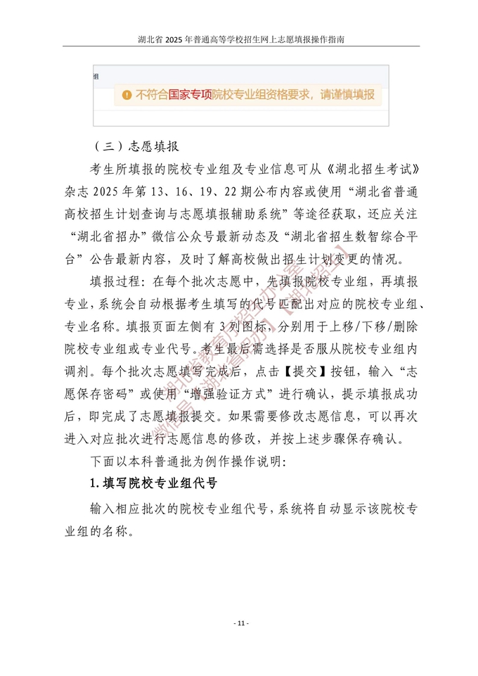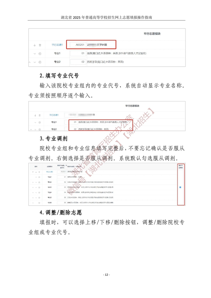 湖北:2025年普通高校招生网上志愿填报操作指南 时间:2025-06-27 湖北 高考新闻 6月29日至7月2日,全省将组织开展普通高校招生志愿填报工作。为此,省招办专门制作了网上志愿填报操作指南,帮助考生了解并掌握志愿填报的操作流程。 2293393102