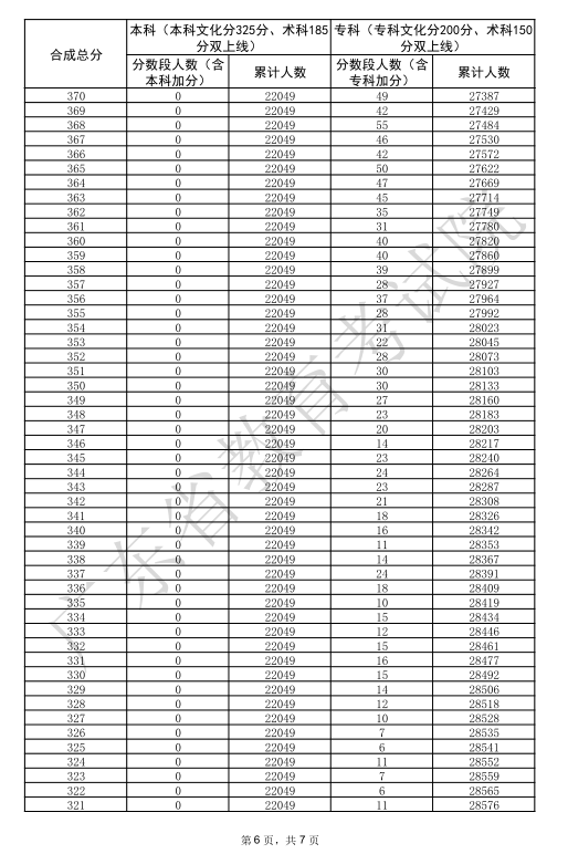 高考一分一段表意思是将全省同科类考生的档案分从高到低排列,再按每1分一段,统计“本段人数”;从本段向上一直到最高分段的所有“本段人数”相加,则为“累计人数”。