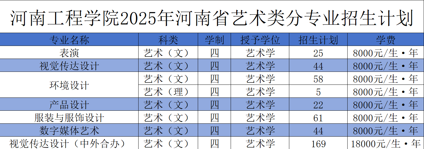 2025河南工程学院艺术类招生计划及各专业招生人数