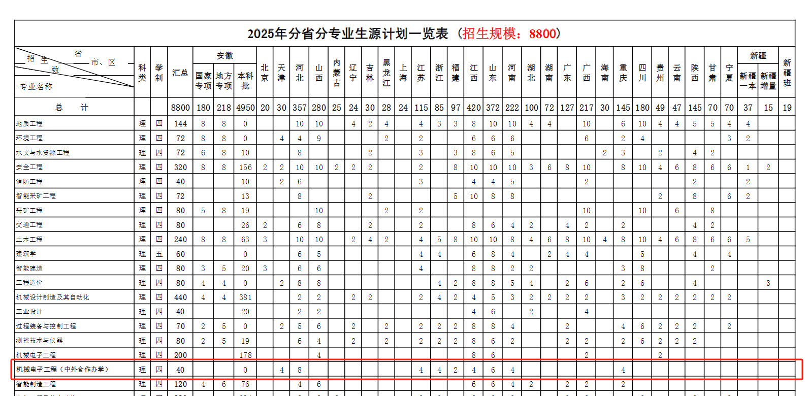 2025安徽理工大学中外合作办学招生计划及各专业招生人数