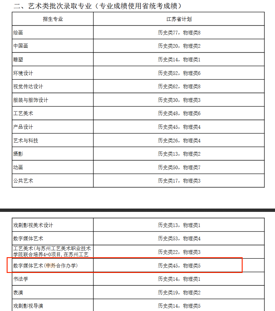 南京艺术学院2025年本科招生江苏计划(中外合作办学)