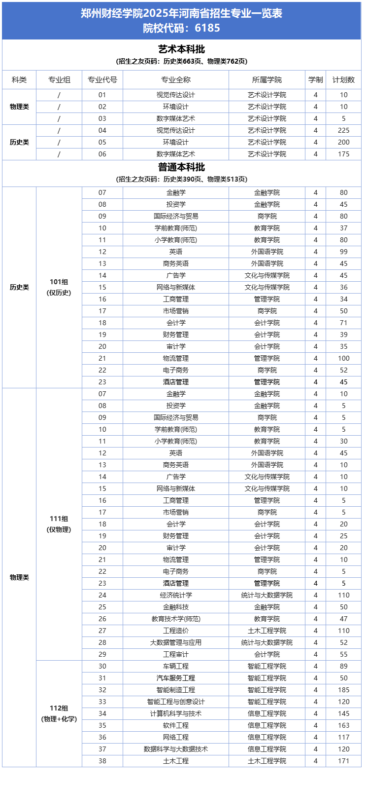 本文为大家整理的是郑州财经学院2025年招生计划,主要包含招生专业、招生类别、各专业招生人数等信息,希望对大家有所帮助,如有变动或异议,请以各省市教育考试院或学校公布的信息为准。