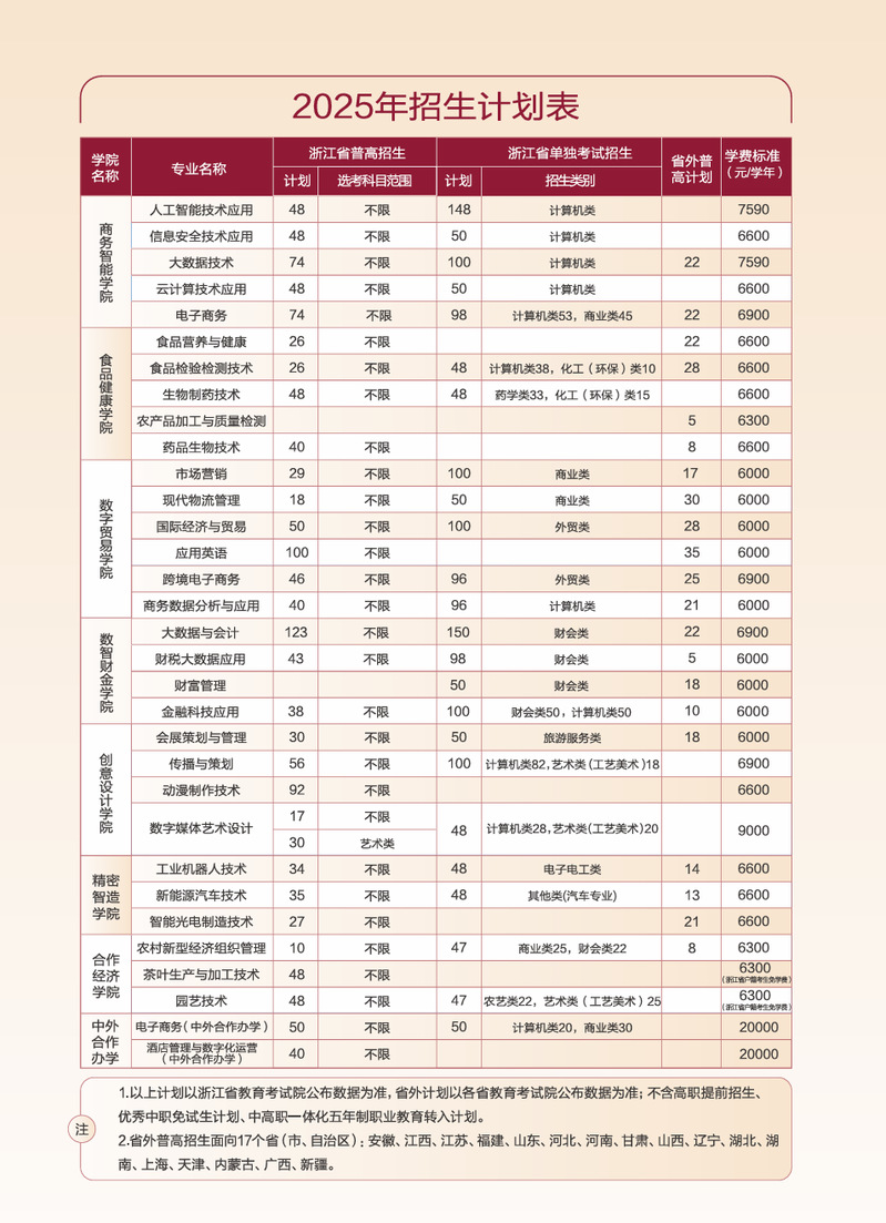 本文为大家整理的是浙江经贸职业技术学院2025年招生计划,主要包含招生专业、招生类别、各专业招生人数等信息,希望对大家有所帮助,如有变动或异议,请以各省市教育考试院或学校公布的信息为准。