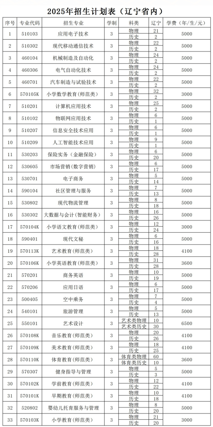 2025铁岭师范高等专科学校招生计划及各专业招生人数