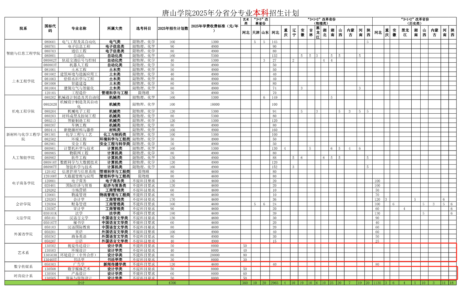 2025唐山学院艺术类招生计划及各专业招生人数