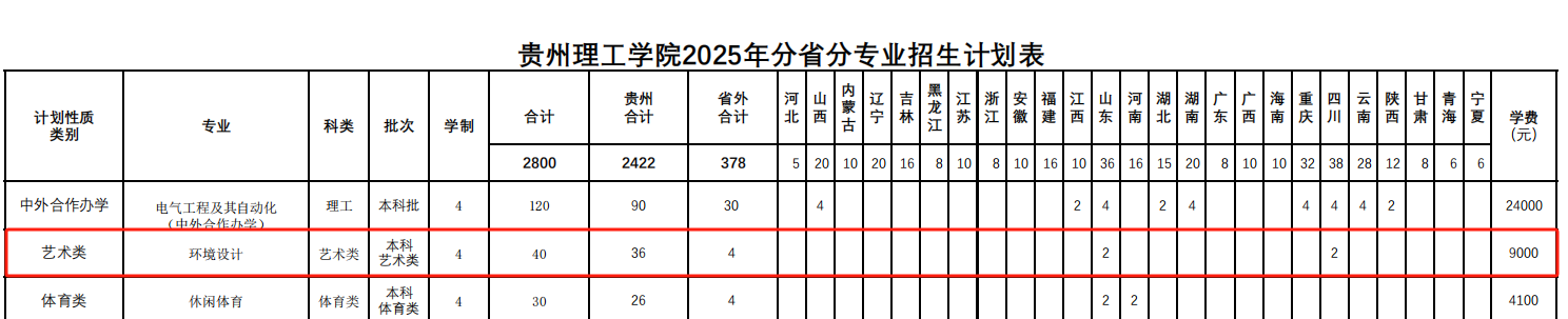 2025贵州理工学院艺术类招生计划及各专业招生人数