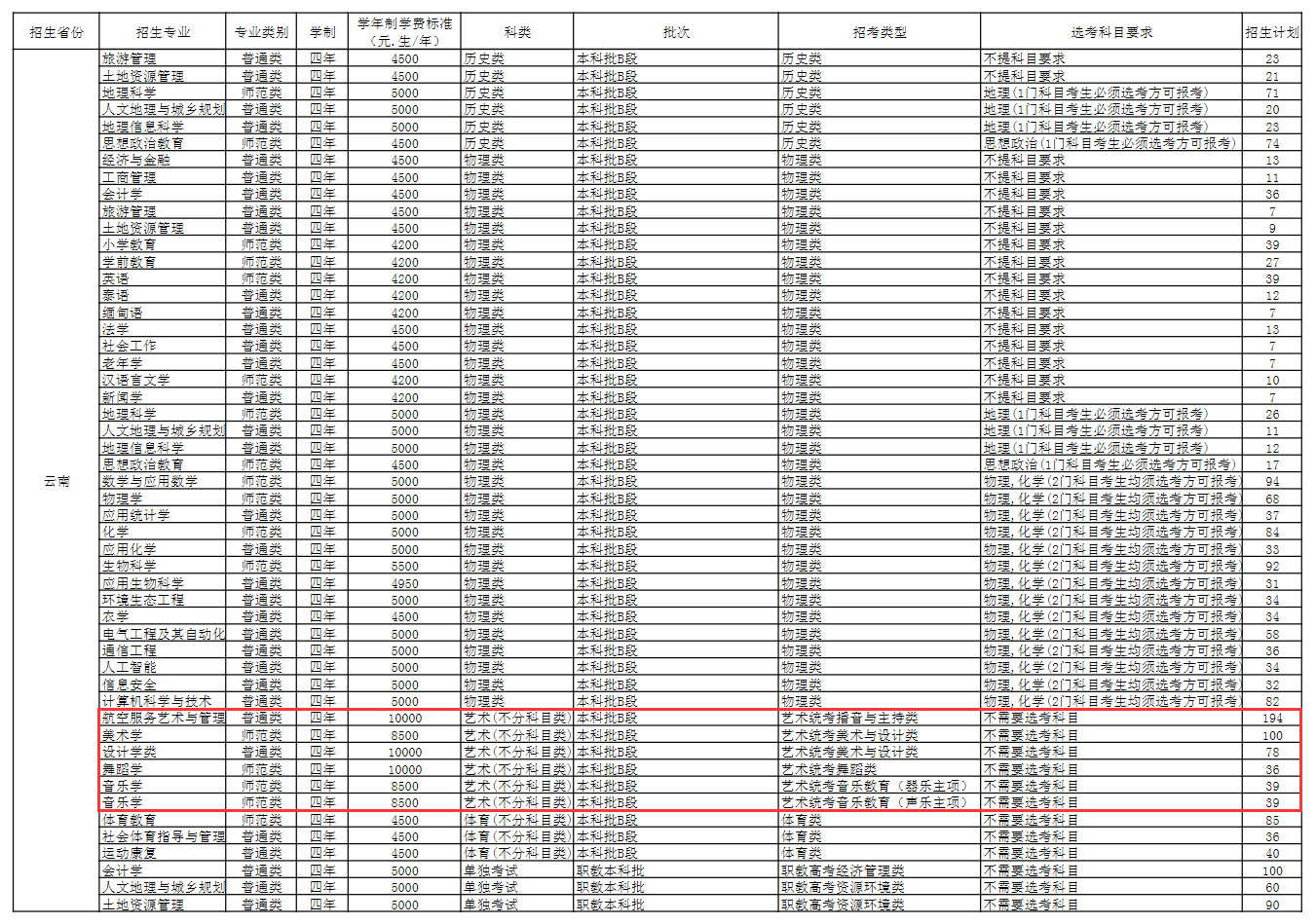 2025玉溪师范学院艺术类招生计划及各专业招生人数