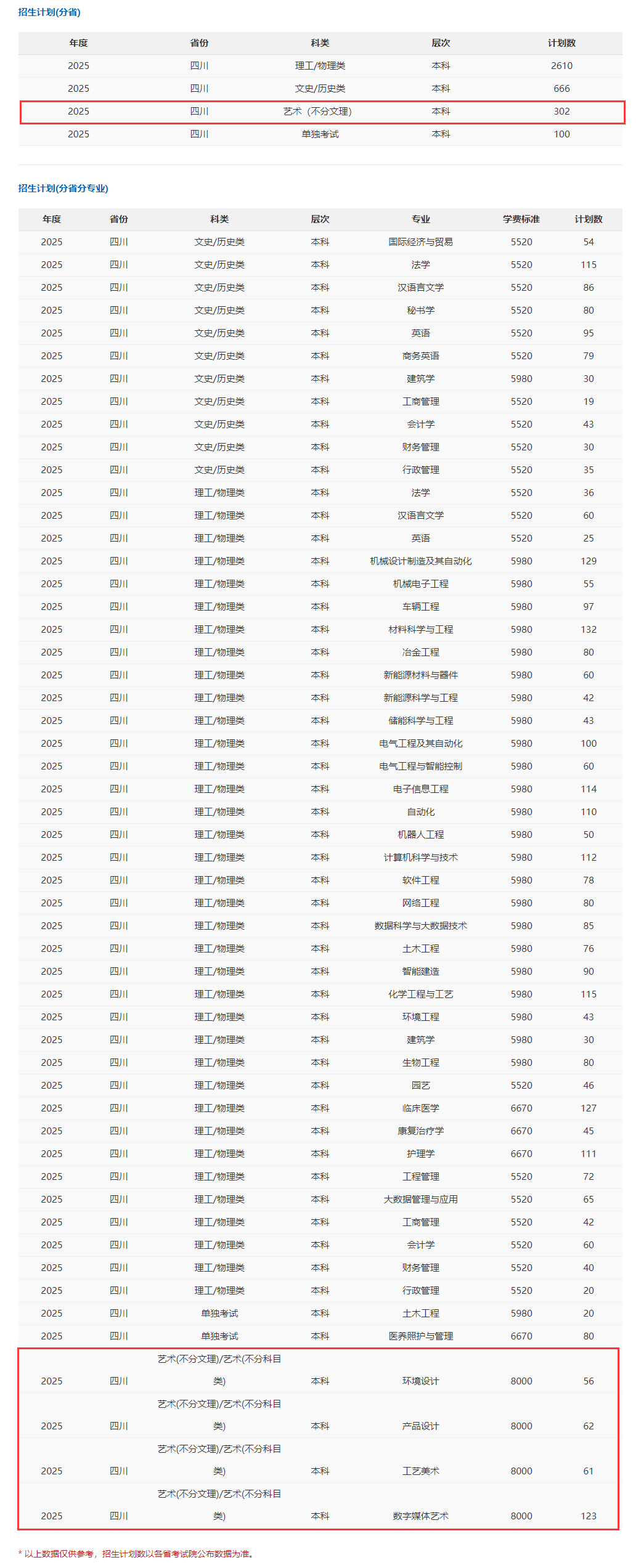 2025攀枝花学院艺术类招生计划及各专业招生人数