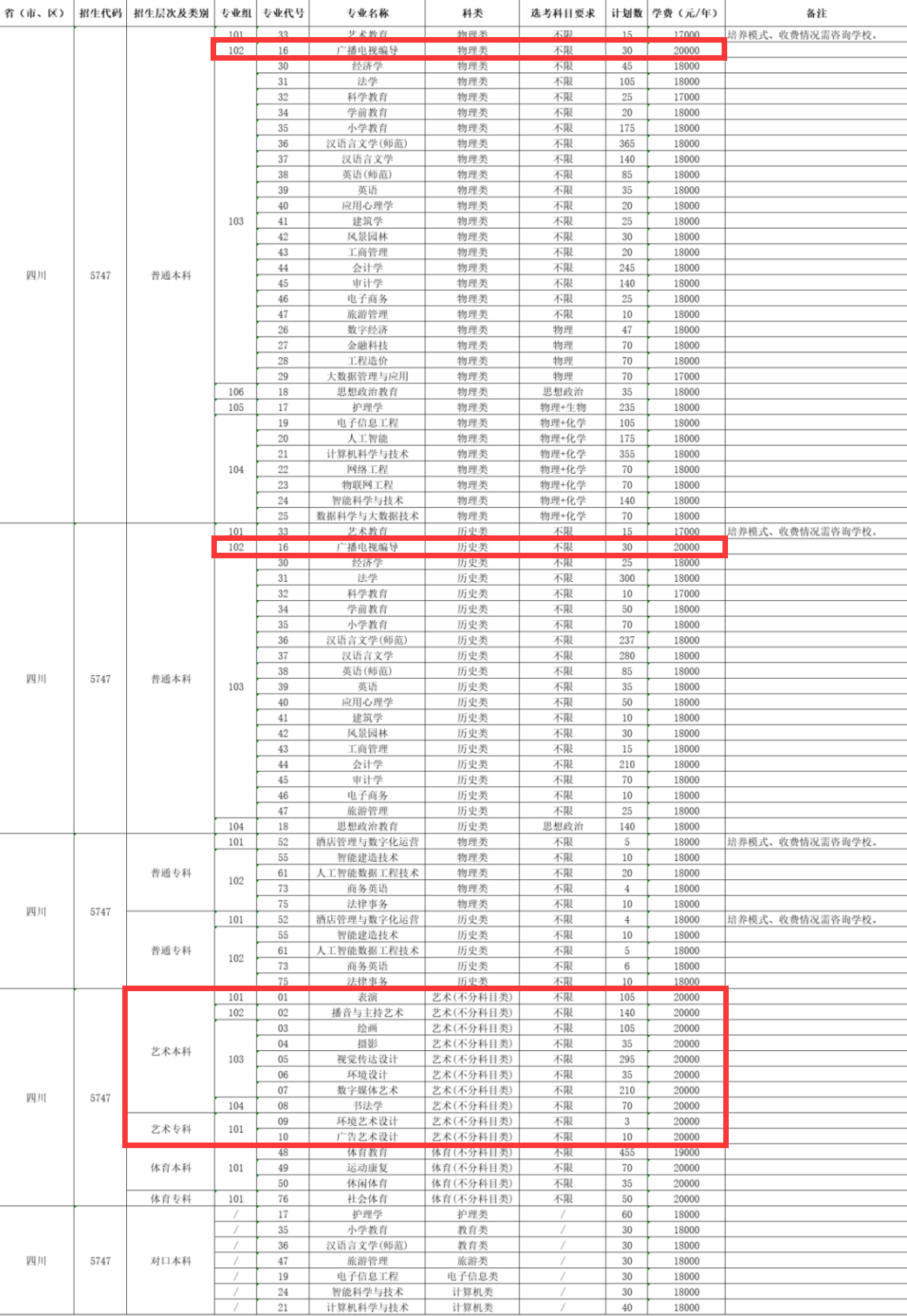 成都文理学院2025年招生计划-四川-艺术类