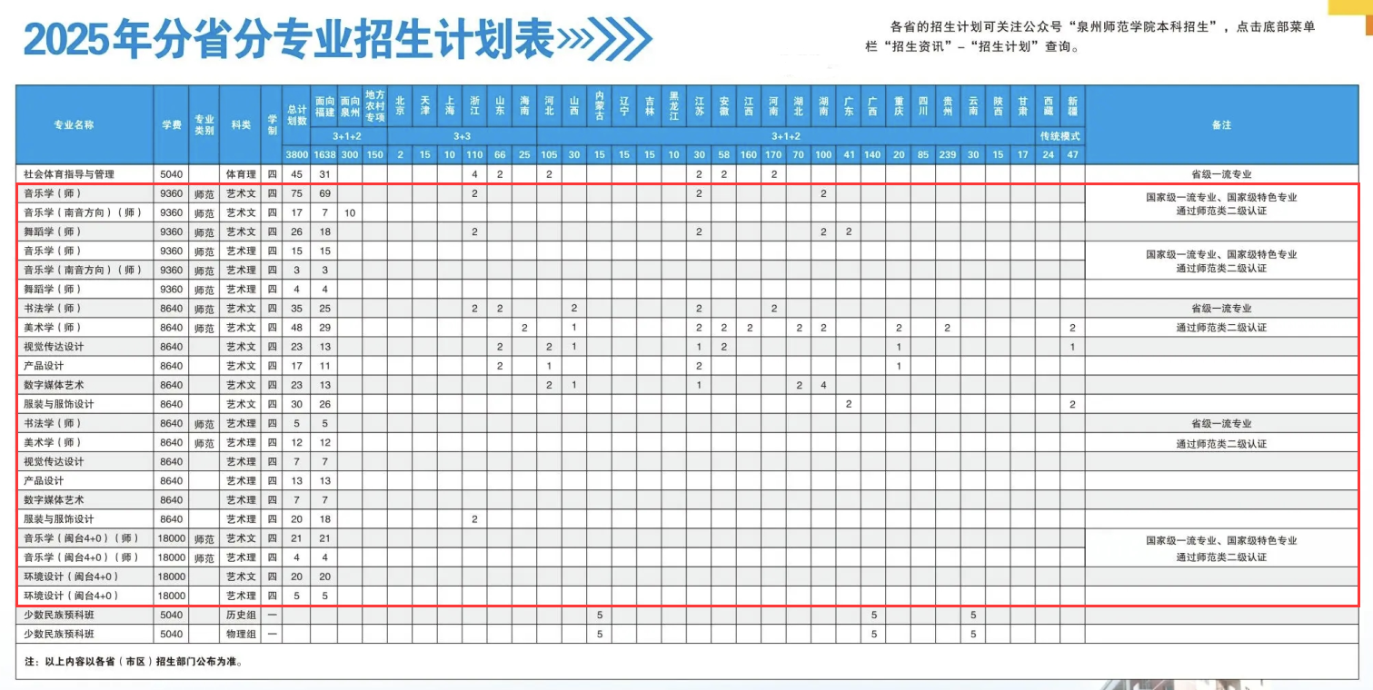 本文为大家整理的是泉州师范学院2025年艺术类招生计划,主要包含招生专业、各专业招生人数等信息,希望对大家有所帮助,如有变动或异议,请以各省市教育考试院或学校公布的信息为准。