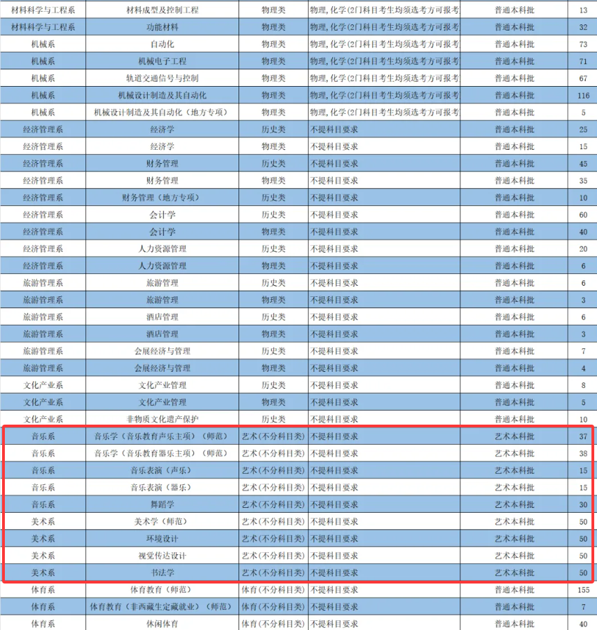 2025晋中学院艺术类招生计划及各专业招生人数