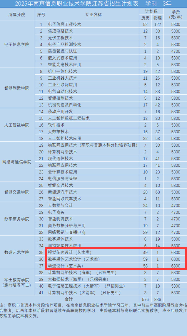 2025南京信息职业技术学院艺术类招生计划及各专业招生人数