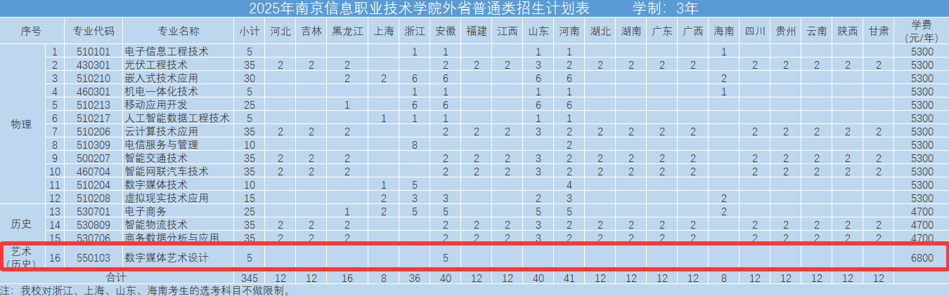 本文为大家整理的是南京信息职业技术学院2025年艺术类招生计划,主要包含招生专业、各专业招生人数等信息,希望对大家有所帮助,如有变动或异议,请以各省市教育考试院或学校公布的信息为准。