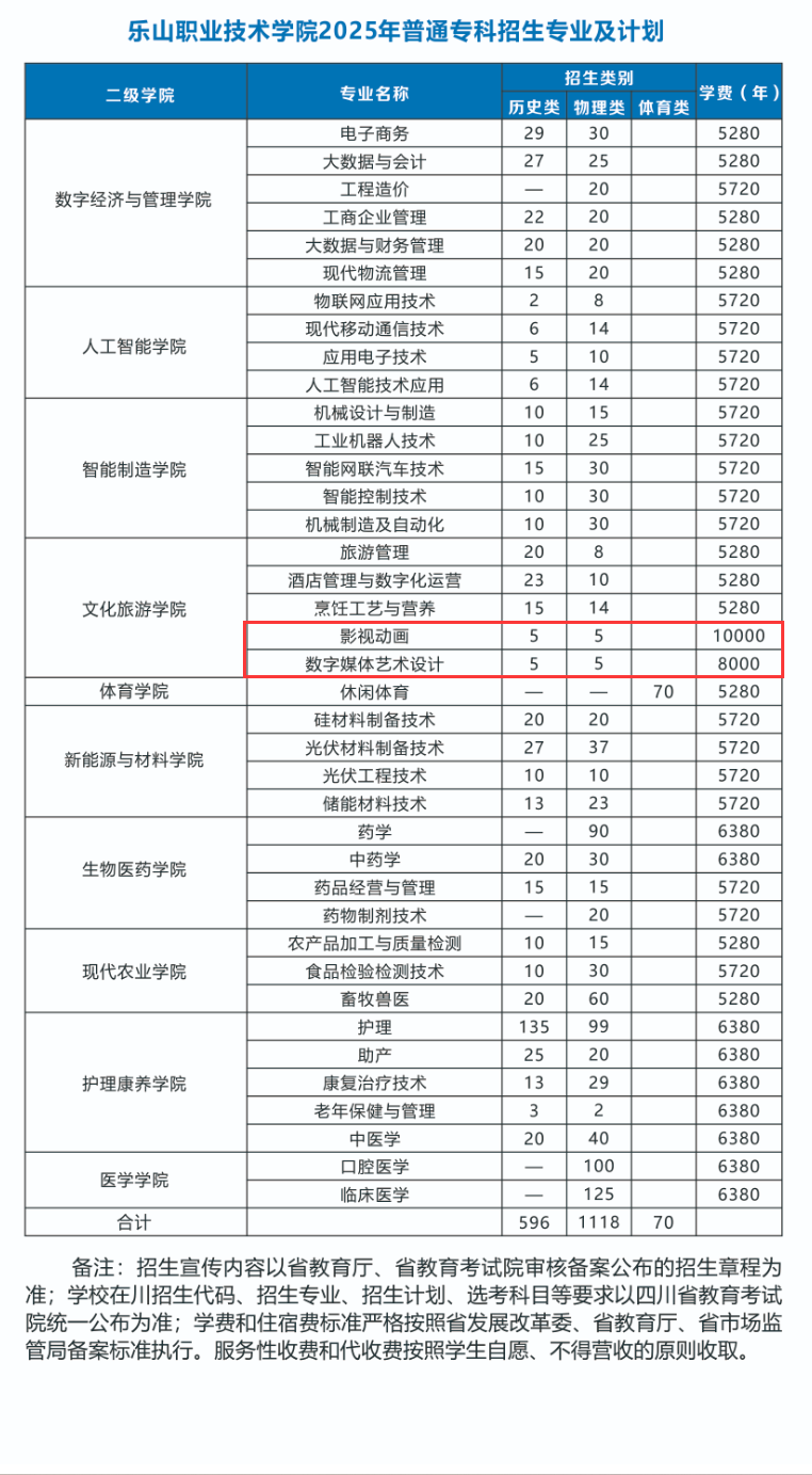 2025乐山职业技术学院艺术类招生计划及各专业招生人数