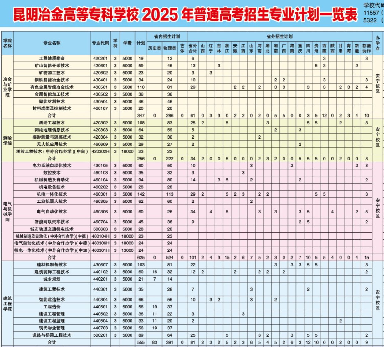 本文为大家整理的是昆明冶金高等专科学校2025年艺术类招生计划,主要包含招生专业、各专业招生人数等信息,希望对大家有所帮助,如有变动或异议,请以各省市教育考试院或学校公布的信息为准。