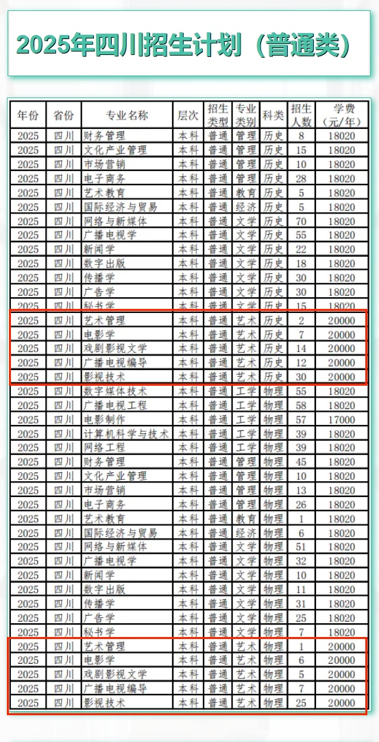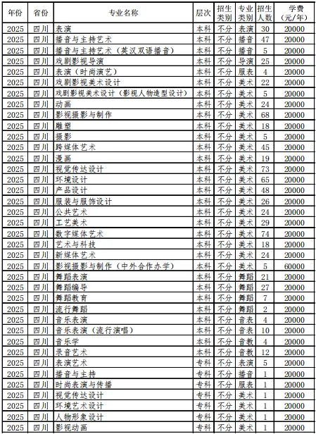 本文为大家整理的是四川传媒学院2025年艺术类招生计划,主要包含招生专业、各专业招生人数等信息,希望对大家有所帮助,如有变动或异议,请以各省市教育考试院或学校公布的信息为准。