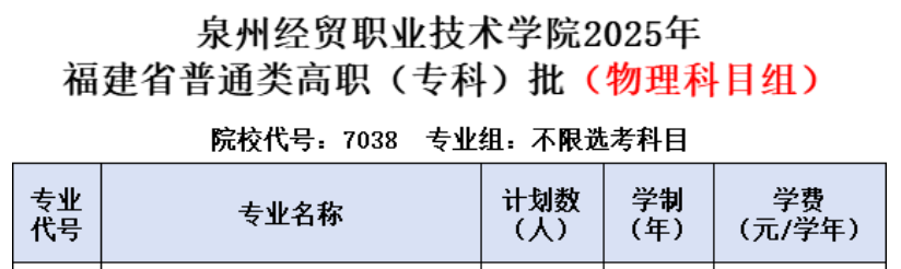 本文为大家整理的是泉州经贸职业技术学院2025年艺术类招生计划,主要包含招生专业、各专业招生人数等信息,希望对大家有所帮助,如有变动或异议,请以各省市教育考试院或学校公布的信息为准。