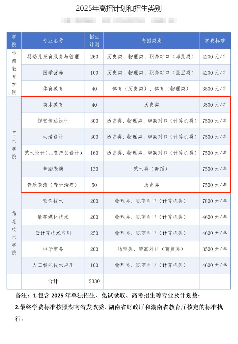2025长沙幼儿师范高等专科学校艺术类招生计划及各专业招生人数