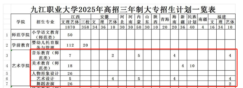 2025九江职业大学艺术类招生计划及各专业招生人数