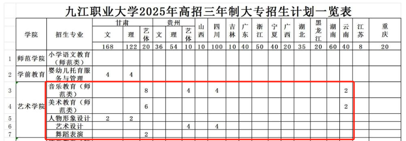 本文为大家整理的是九江职业大学2025年艺术类招生计划,主要包含招生专业、各专业招生人数等信息,希望对大家有所帮助,如有变动或异议,请以各省市教育考试院或学校公布的信息为准。
