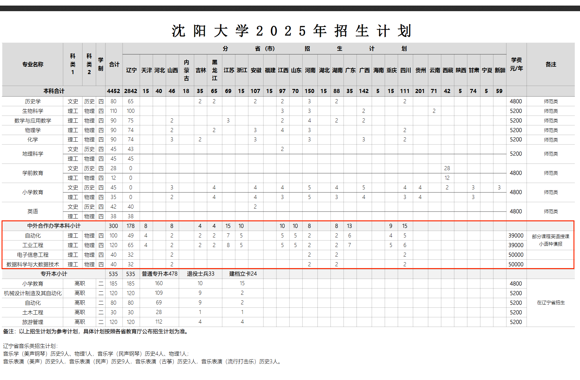 2025沈阳大学中外合作办学招生计划及各专业招生人数