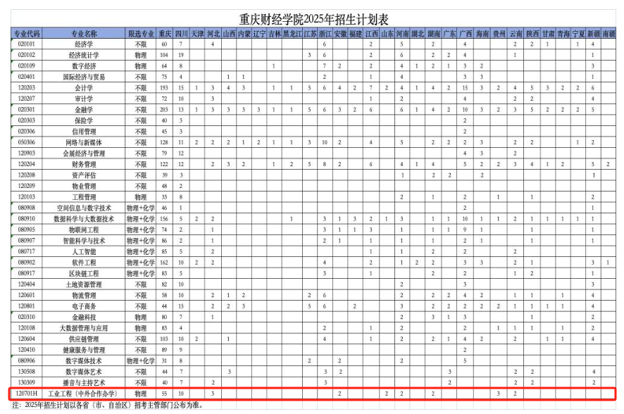 2025重庆财经学院中外合作办学招生计划及各专业招生人数