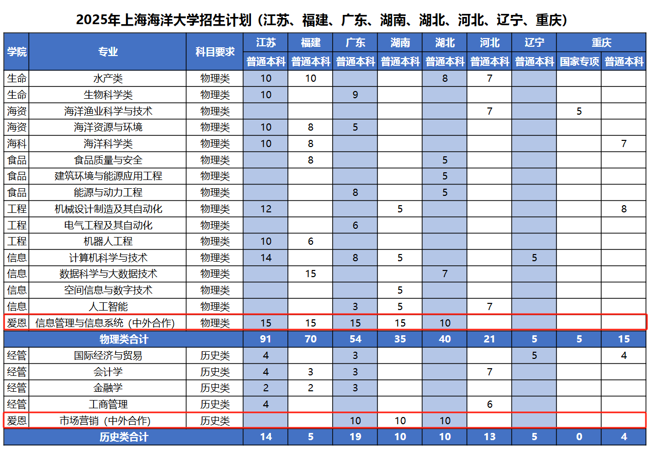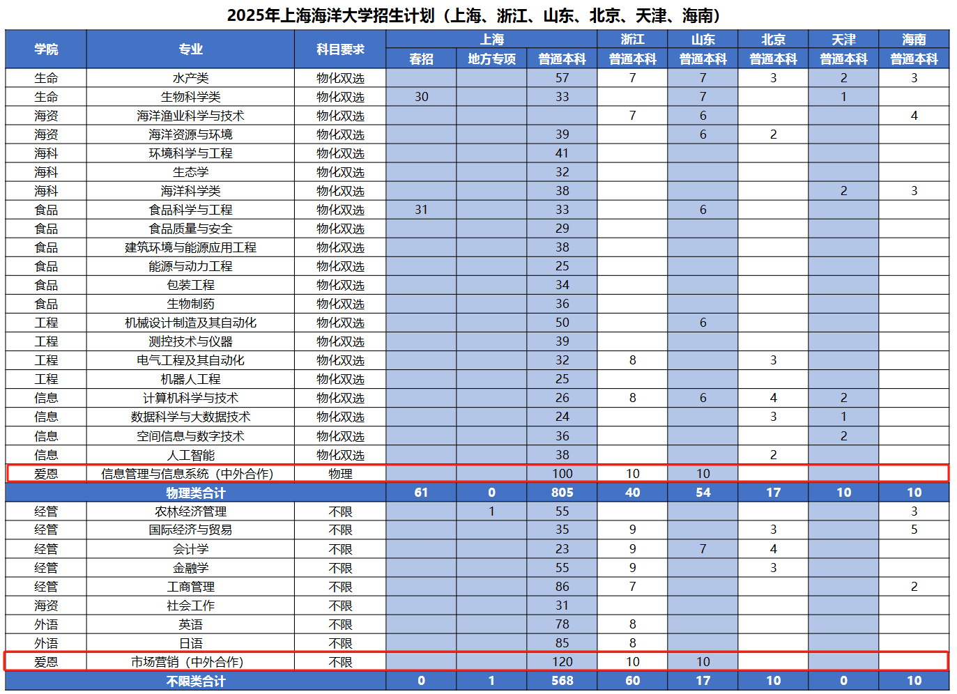 本文为大家整理的是上海海洋大学2025年中外合作办学招生计划,主要包含招生专业、各专业招生人数等信息,希望对大家有所帮助,如有变动或异议,请以各省教育考试院和学校公布的信息为准。