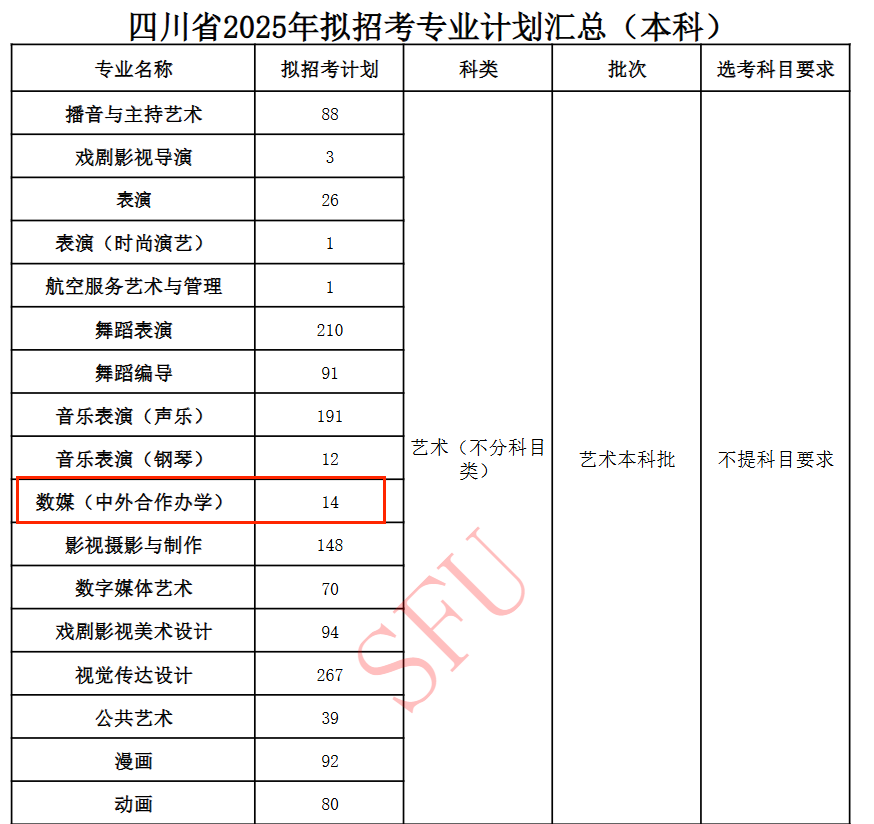 2025四川电影电视学院中外合作办学招生计划及各专业招生人数
