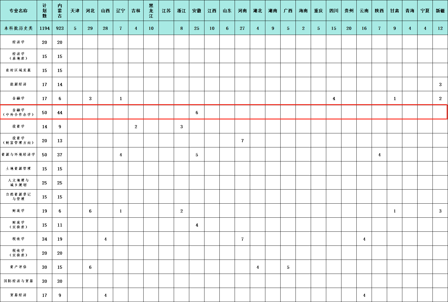 内蒙古财经大学2025年分省分专业招生计划-中外合作办学