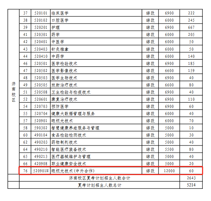 2025山东医学高等专科学校中外合作办学招生计划及各专业招生人数