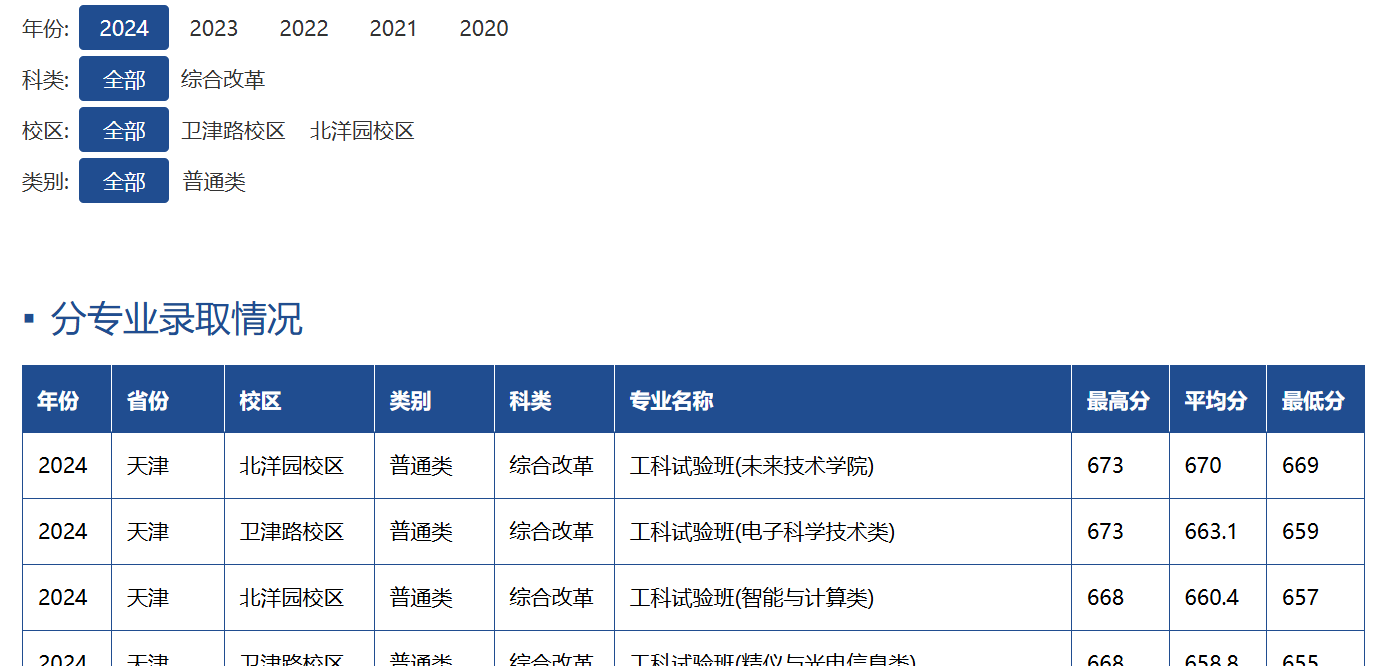 点击查看详细历年分数:天津大学在天津地区历年录取分数